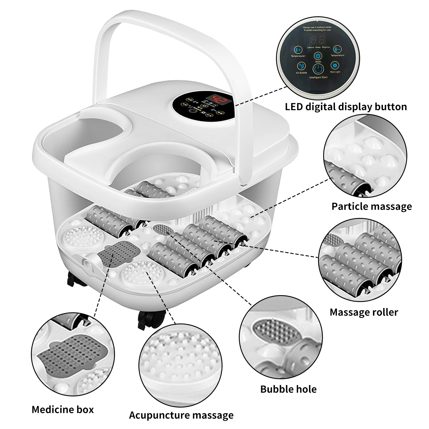 Profitez d'une expérience de spa luxueuse et relaxante à la maison avec ceMasseur électrique multifonctionnel pour bain de pieds.Conçu pour soulager la fatigue, améliorer la circulation sanguine et favoriser un meilleur sommeil, ce spa pour les pieds chauffant combine des rouleaux de massage, des jets à bulles d'oxygène et des réglages de température réglables pour offrir un confort et un soin ultimes à vos pieds.